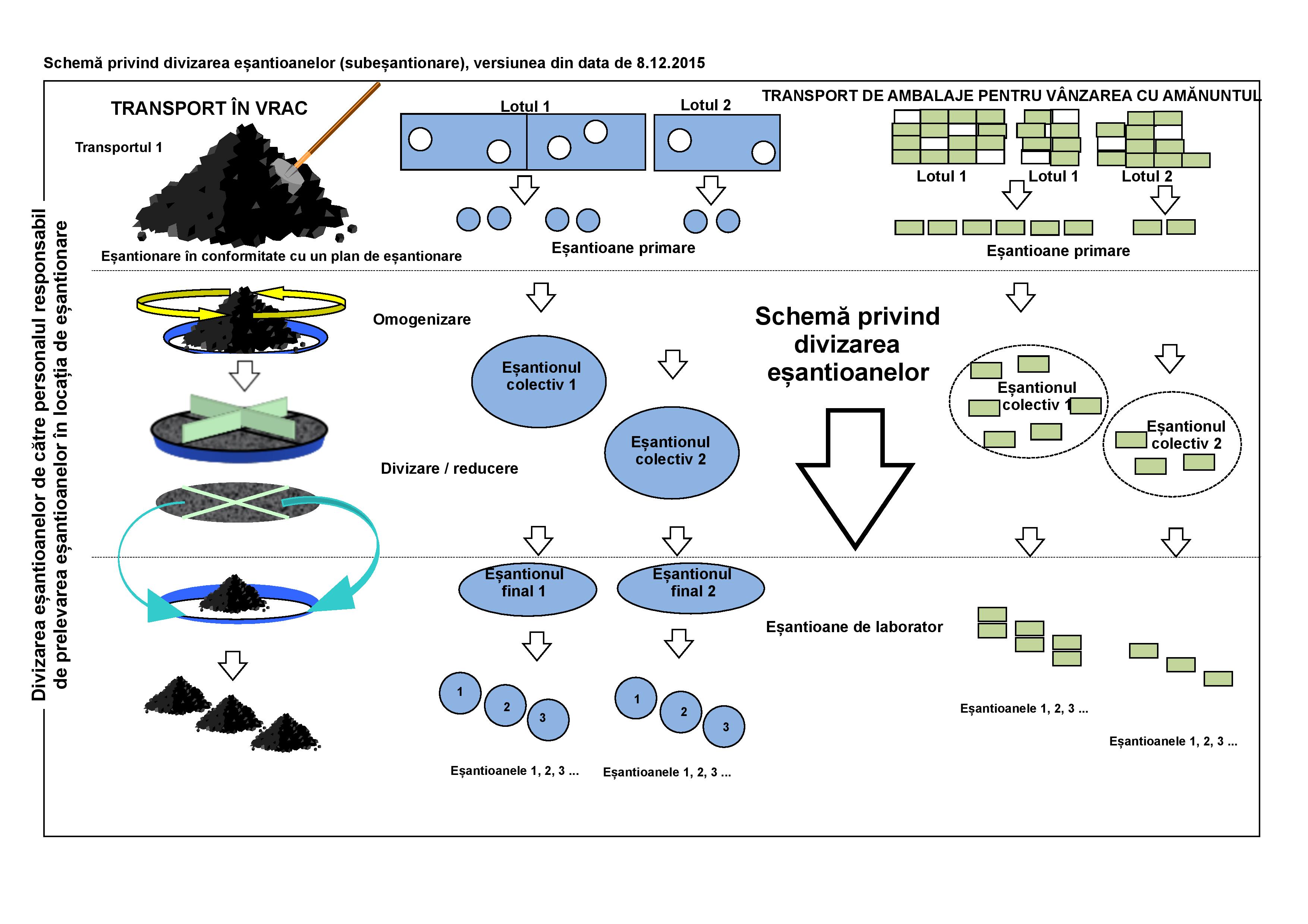 | Lot sau încărcătură (mai mult de un lot) | Prelevați eșantioane din fiecare lot. Etichetele pot indica în mod fiabil dacă aveți de a face cu loturi (un transport de mărfuri similare, dar cu date de producție diferite, de exemplu) sau cu încărcături. Dacă lotul este în vrac, urmați procedura începând de la punctul 3. În toate celelalte cazuri, după prelevarea eșantioanelor, urmați procedura începând de la punctul 7. |